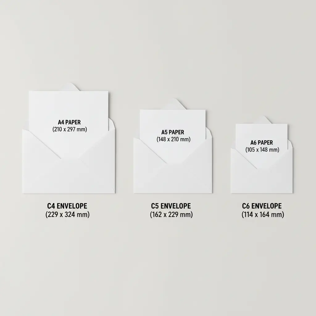 The rule is straightforward: the number following the 'C' corresponds to the 'A' paper size that fits inside. For example, a C5 envelope accommodates an A5 sheet (or an A4 folded to A5 size), while a C6 is perfect for an A6 card.